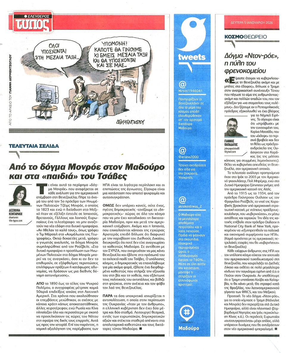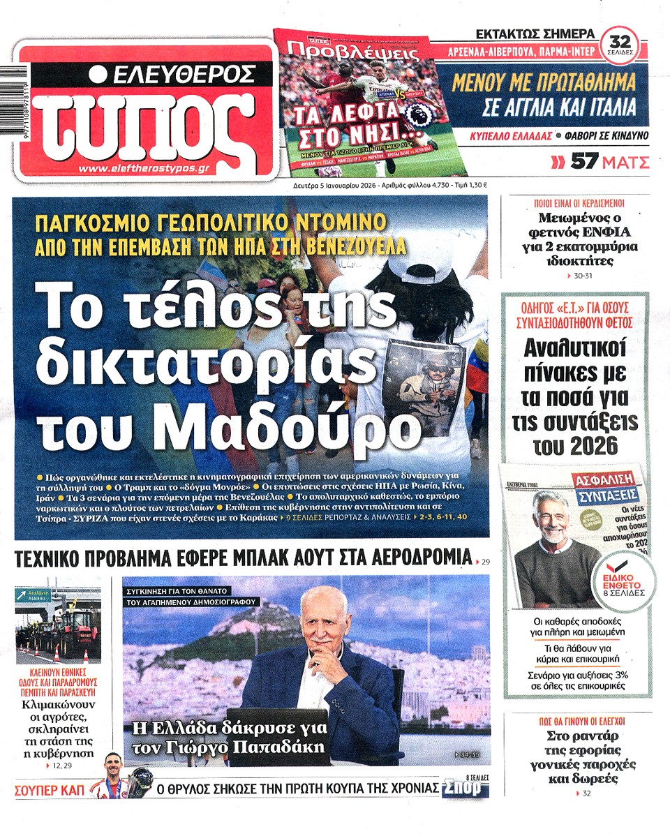 ΕΛΕΥΘΕΡΟΣ ΤΥΠΟΣ - 05 Ιανουαρίου 2026