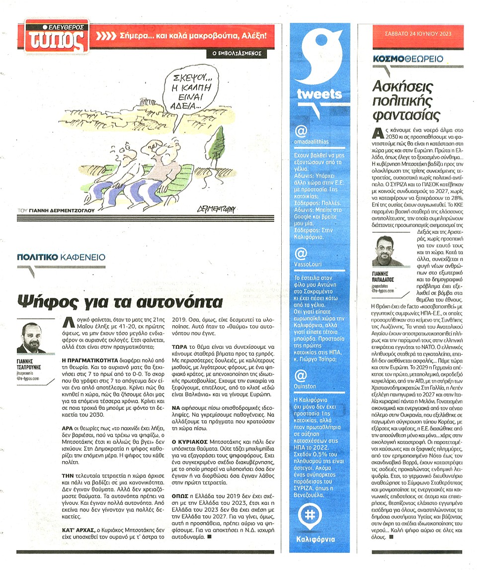 ΕΛΕΥΘΕΡΟΣ ΤΥΠΟΣ - 24 Ιουνίου 2023