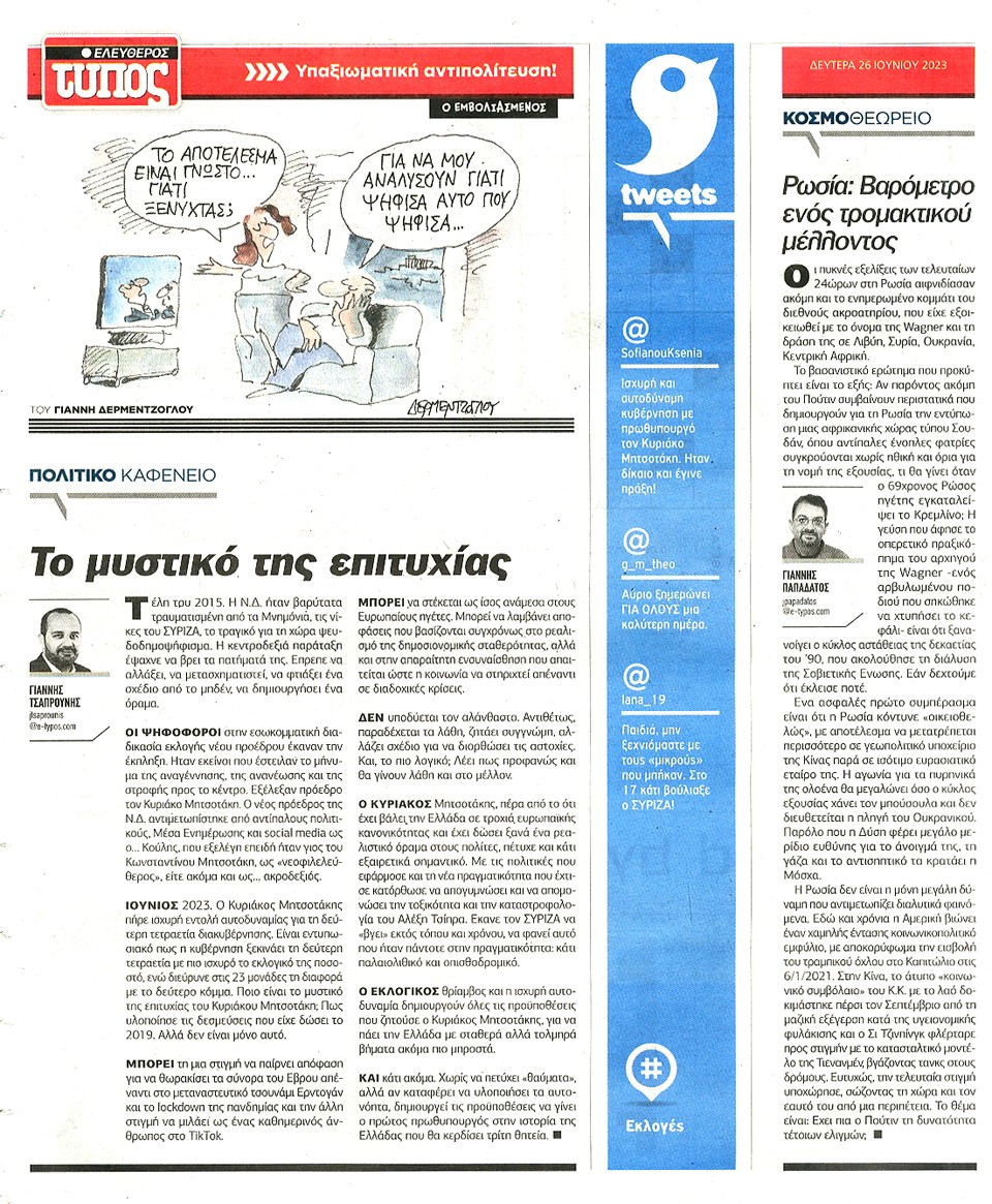 ΕΛΕΥΘΕΡΟΣ ΤΥΠΟΣ - 26 Ιουνίου 2023