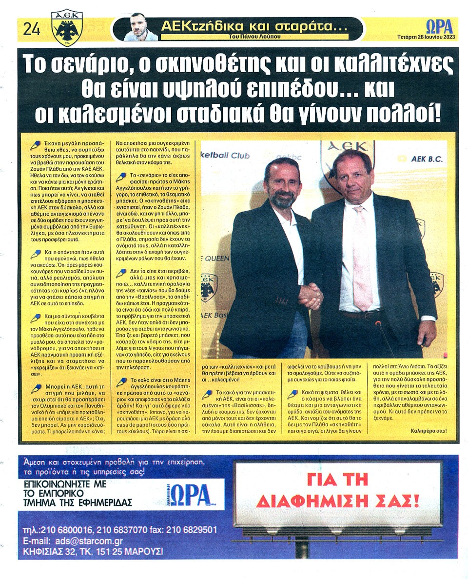 ΑΘΛΗΤΙΚΗ ΩΡΑ ΤΩΝ ΣΠΟΡ - 28 Ιουνίου 2023