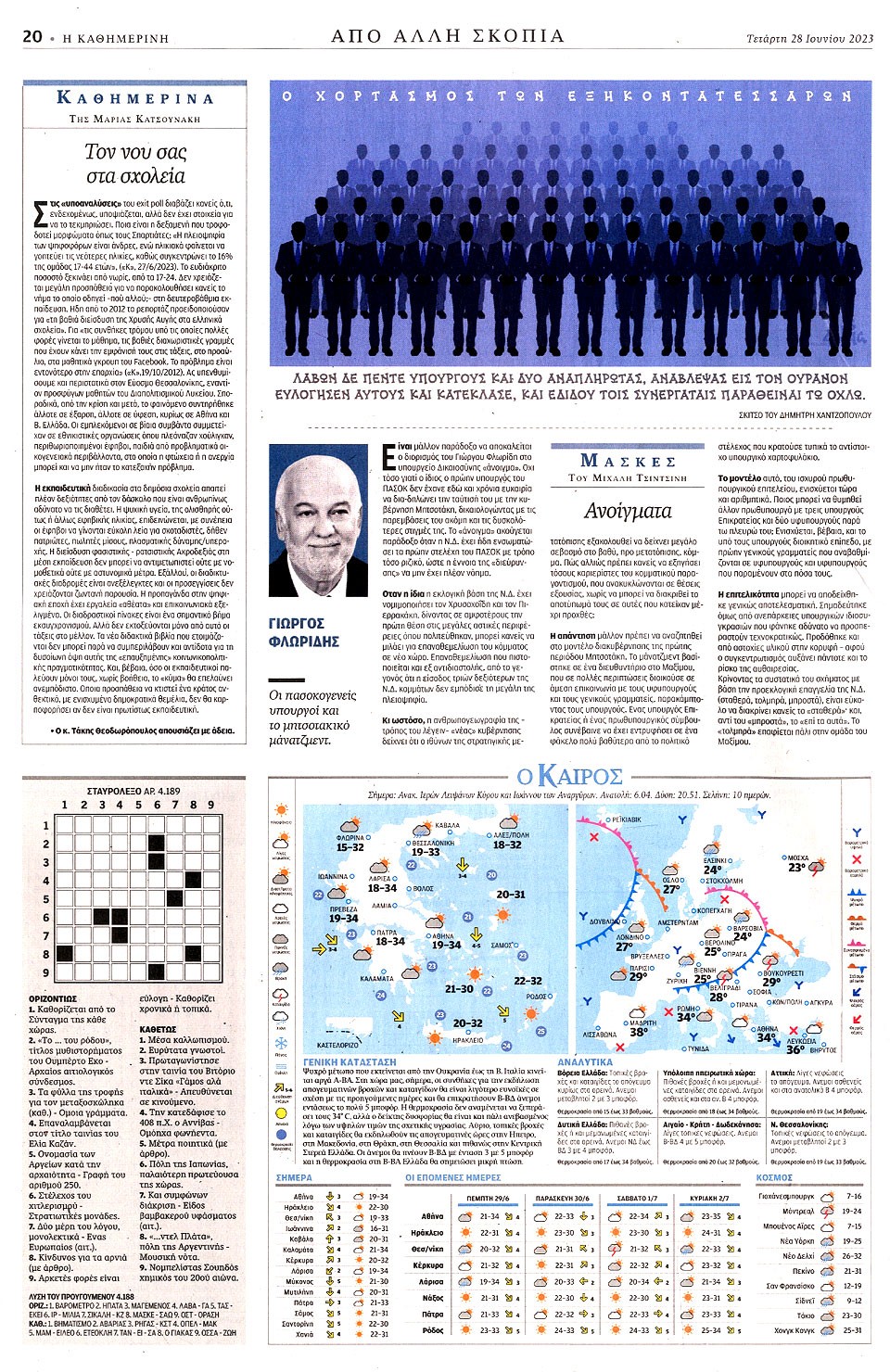 ΚΑΘΗΜΕΡΙΝΗ - 28 Ιουνίου 2023