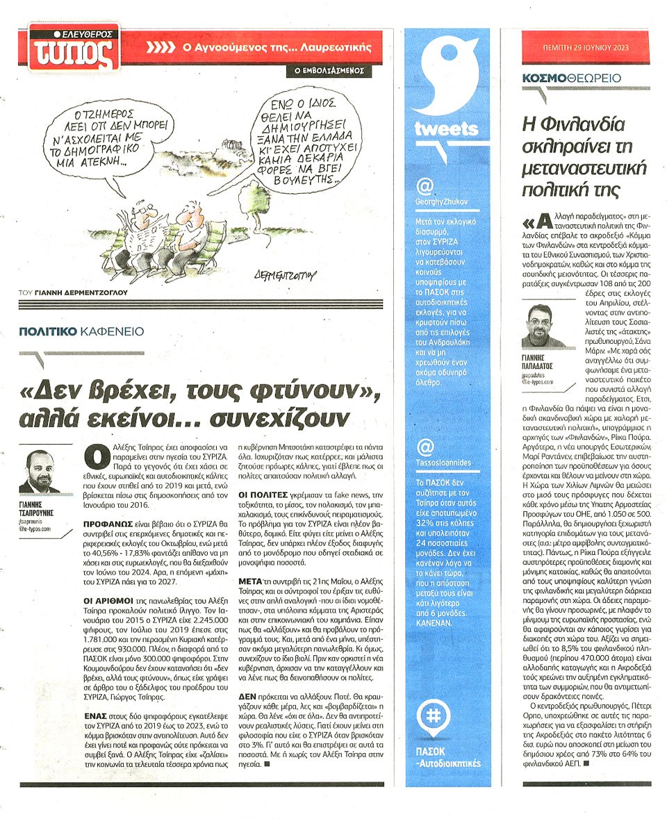 ΕΛΕΥΘΕΡΟΣ ΤΥΠΟΣ - 29 Ιουνίου 2023
