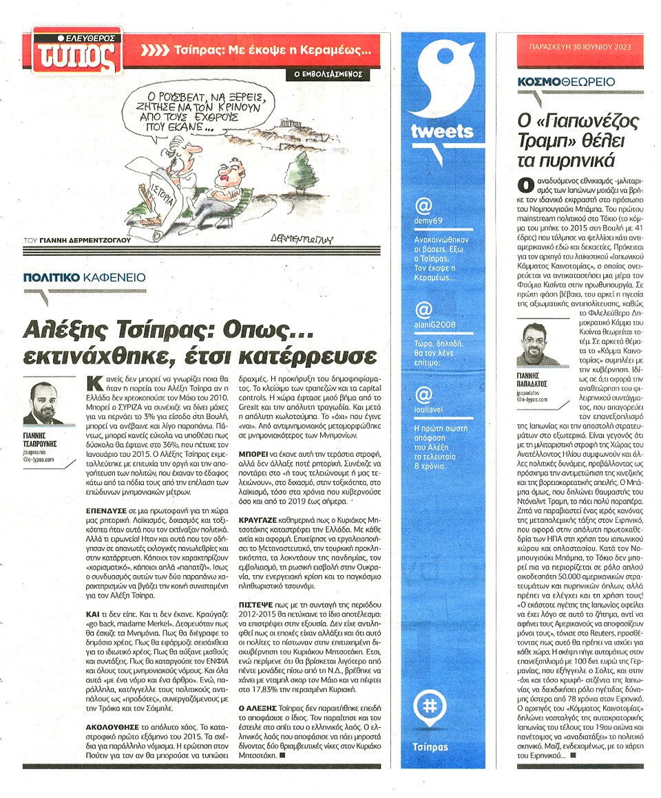 ΕΛΕΥΘΕΡΟΣ ΤΥΠΟΣ - 30 Ιουνίου 2023