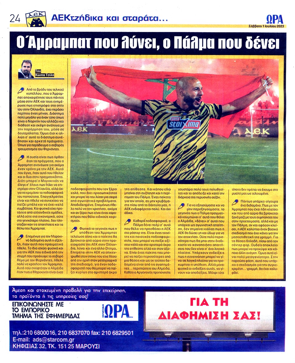 ΑΘΛΗΤΙΚΗ ΩΡΑ ΤΩΝ ΣΠΟΡ - 1 Ιουλίου 2023