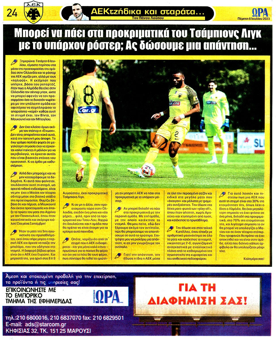 ΑΘΛΗΤΙΚΗ ΩΡΑ ΤΩΝ ΣΠΟΡ - 6 Ιουλίου 2023