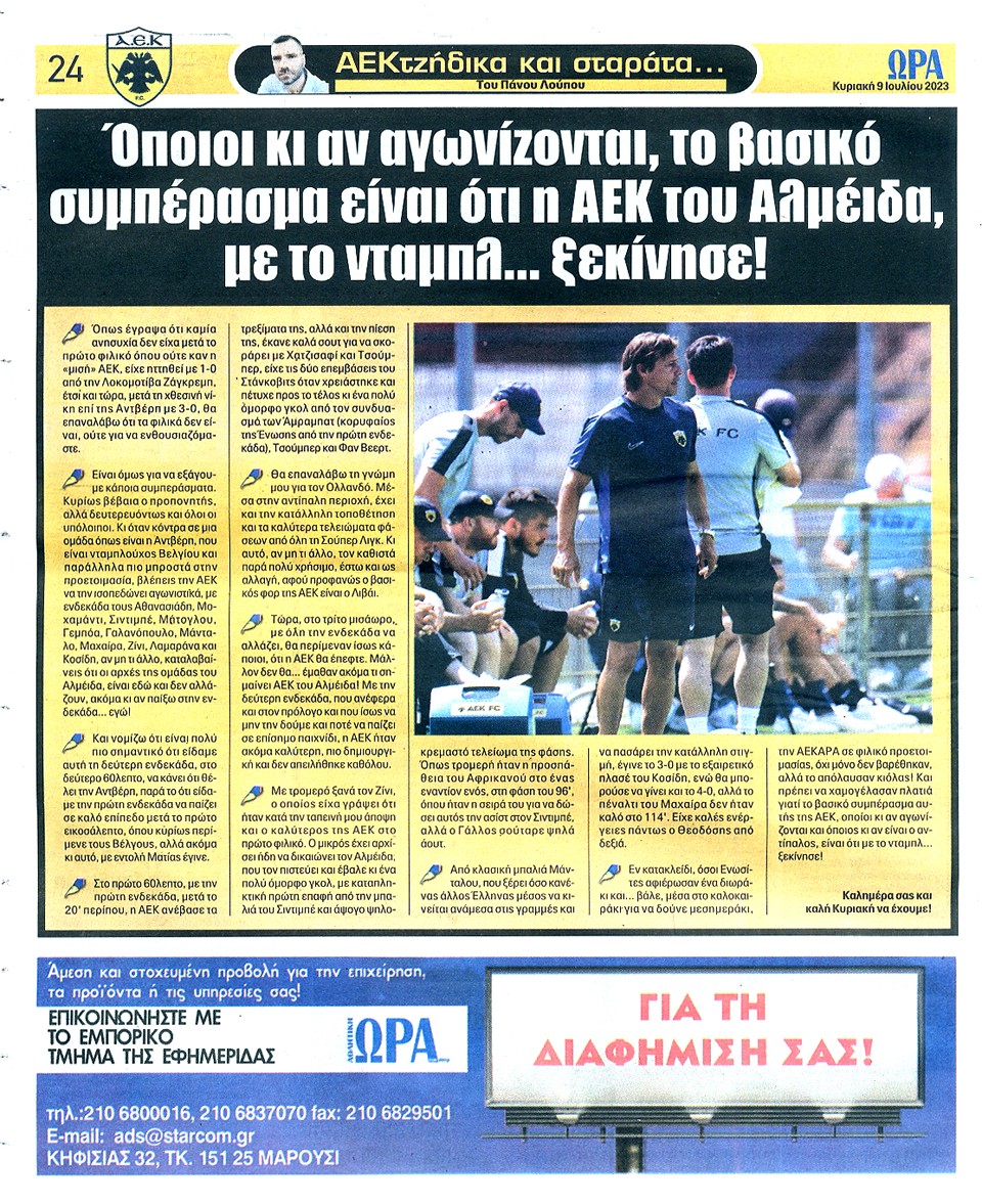 ΑΘΛΗΤΙΚΗ ΩΡΑ ΤΩΝ ΣΠΟΡ - 9 Ιουλίου 2023