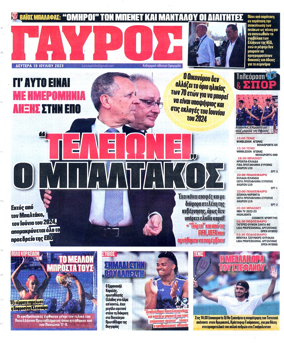 ΠΡΩΤΑΘΛΗΤΗΣ - 10 Ιουλίου 2023