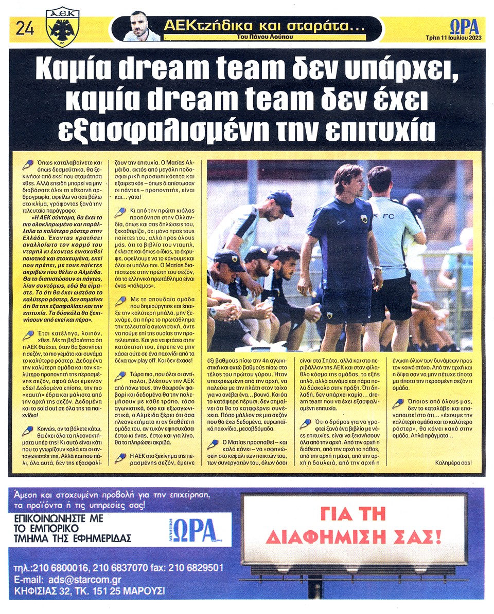 ΑΘΛΗΤΙΚΗ ΩΡΑ ΤΩΝ ΣΠΟΡ - 11 Ιουλίου 2023