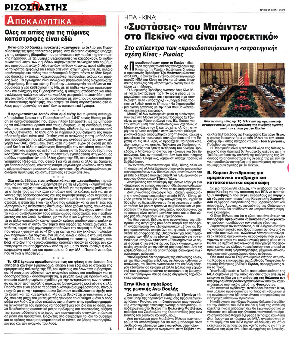 ΡΙΖΟΣΠΑΣΤΗΣ - 11 Ιουλίου 2023