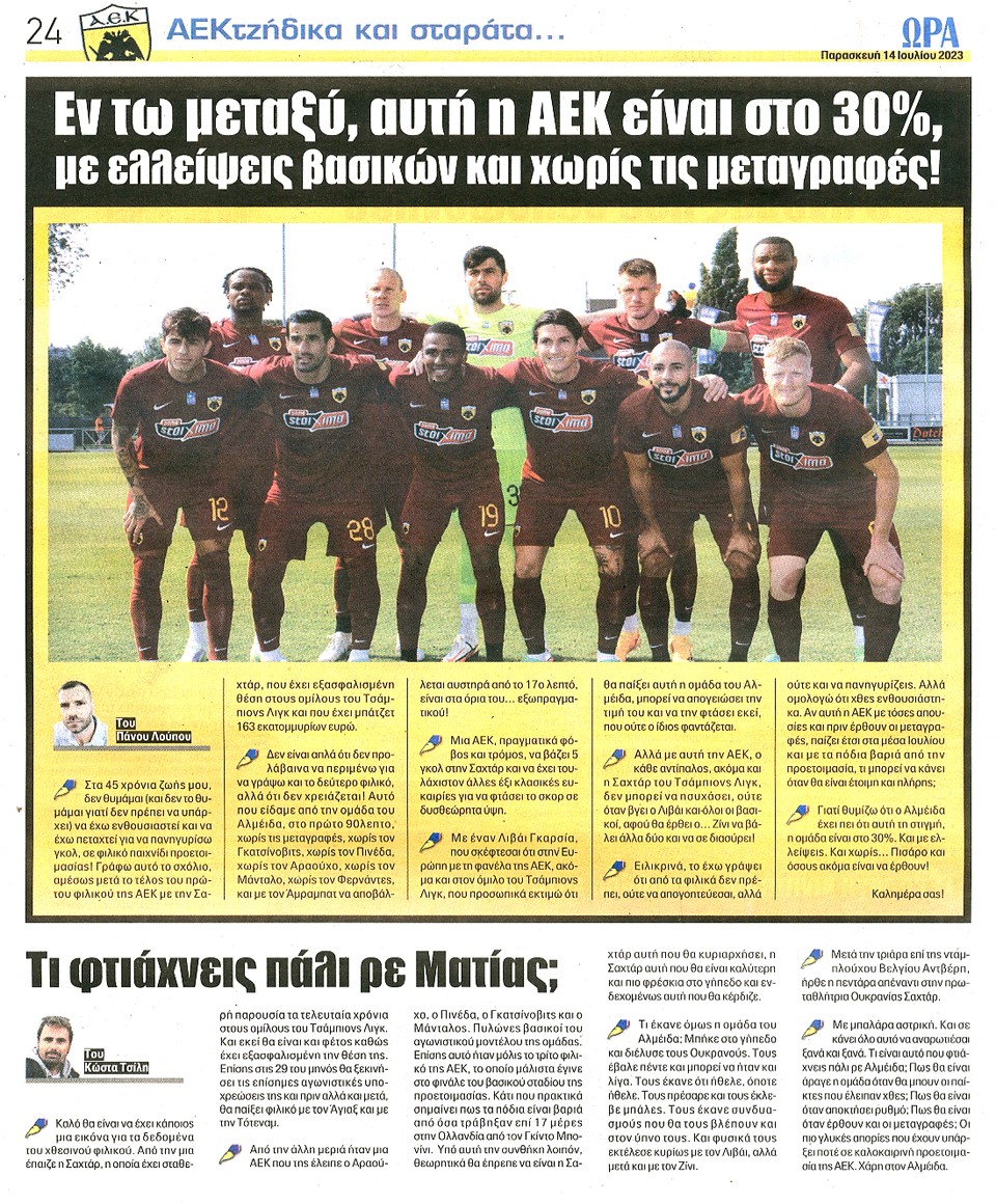 ΑΘΛΗΤΙΚΗ ΩΡΑ ΤΩΝ ΣΠΟΡ - 14 Ιουλίου 2023