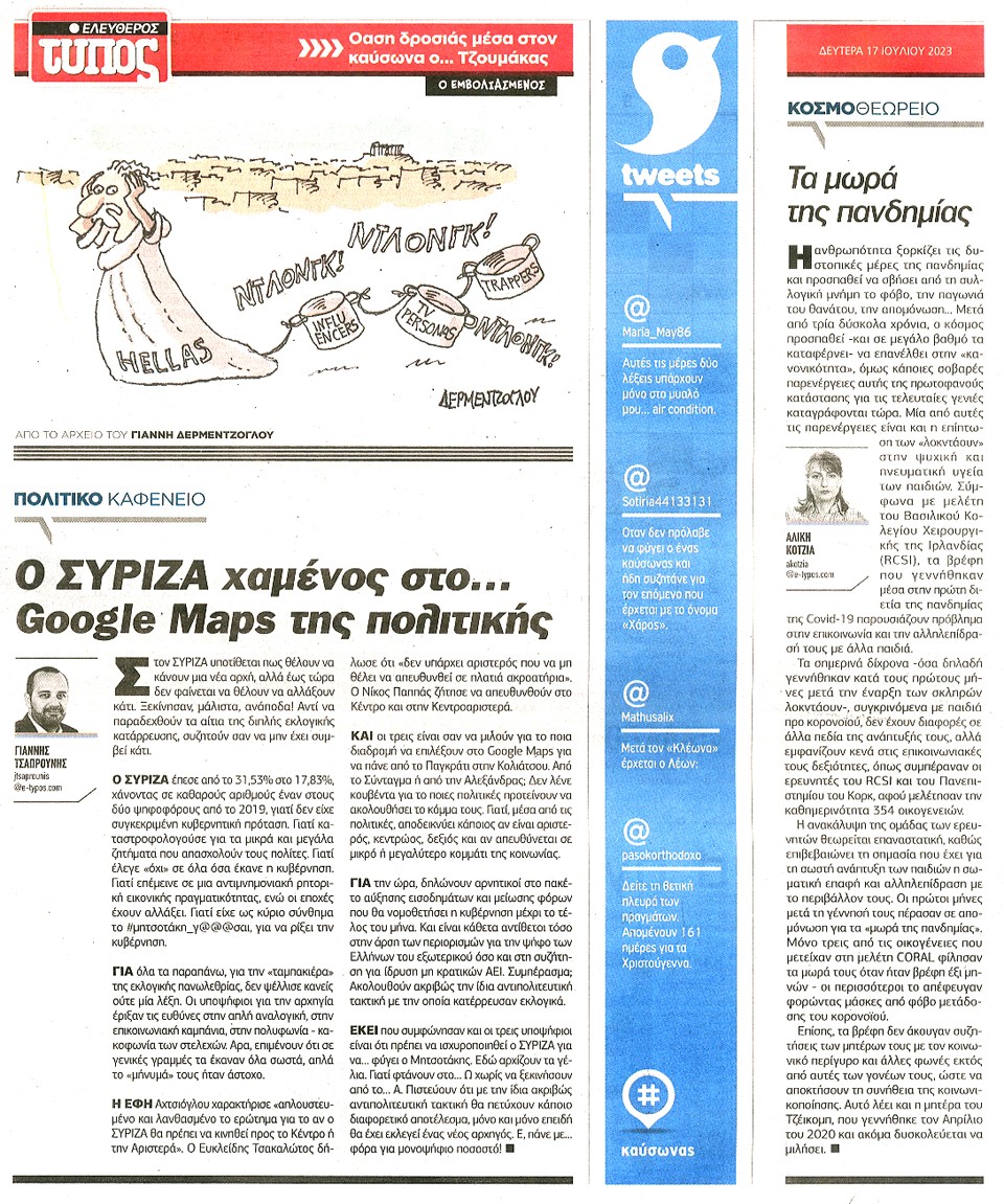 ΕΛΕΥΘΕΡΟΣ ΤΥΠΟΣ - 17 Ιουλίου 2023