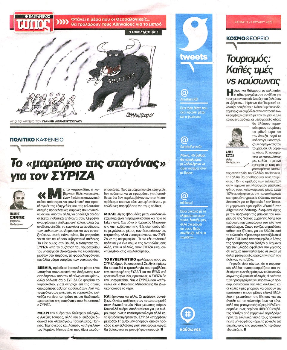 ΕΛΕΥΘΕΡΟΣ ΤΥΠΟΣ - 22 Ιουλίου 2023