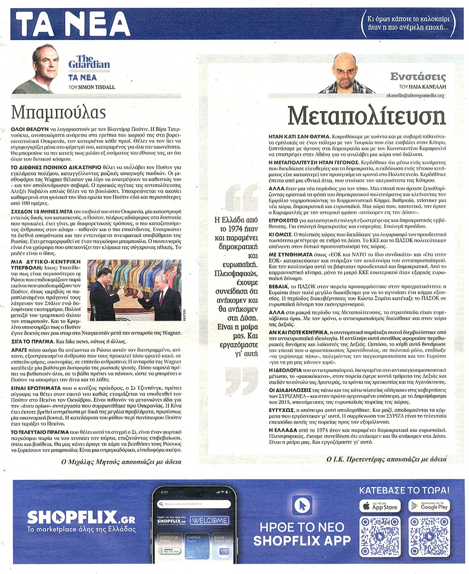 ΤΑ ΝΕΑ - 25 Ιουλίου 2023