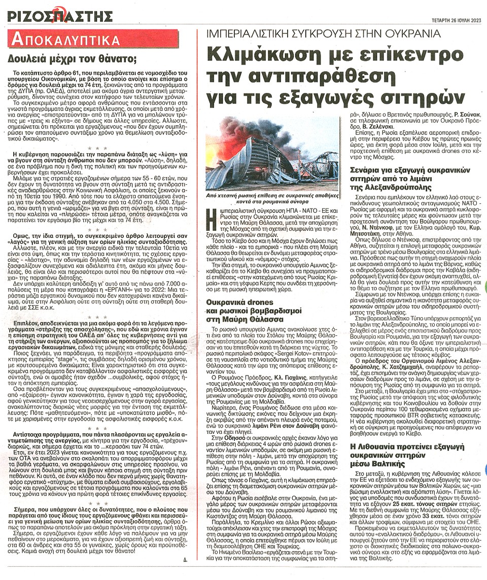 ΡΙΖΟΣΠΑΣΤΗΣ - 26 Ιουλίου 2023