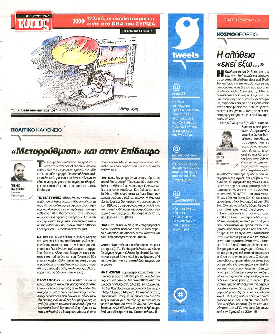 ΕΛΕΥΘΕΡΟΣ ΤΥΠΟΣ - 27 Ιουλίου 2023