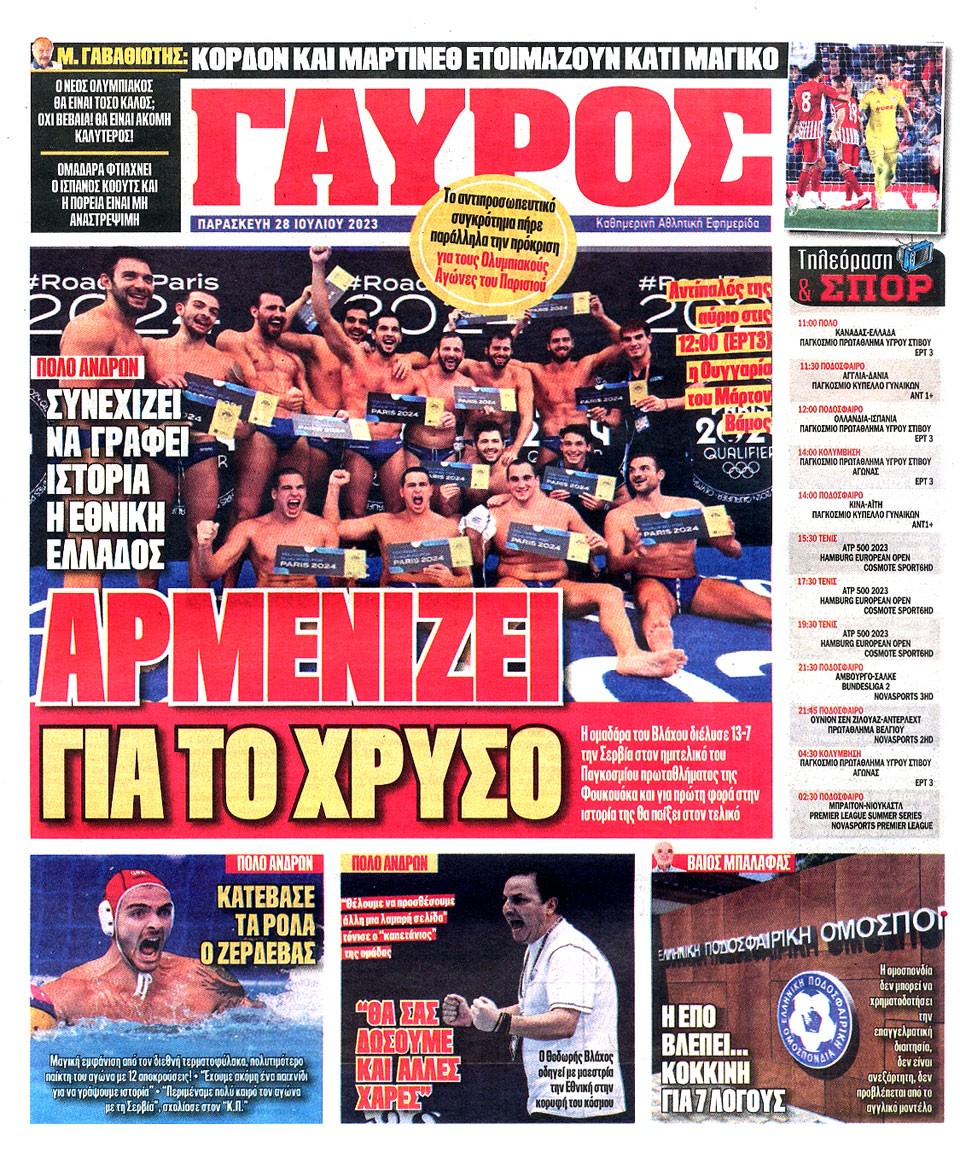 ΠΡΩΤΑΘΛΗΤΗΣ - 28 Ιουλίου 2023
