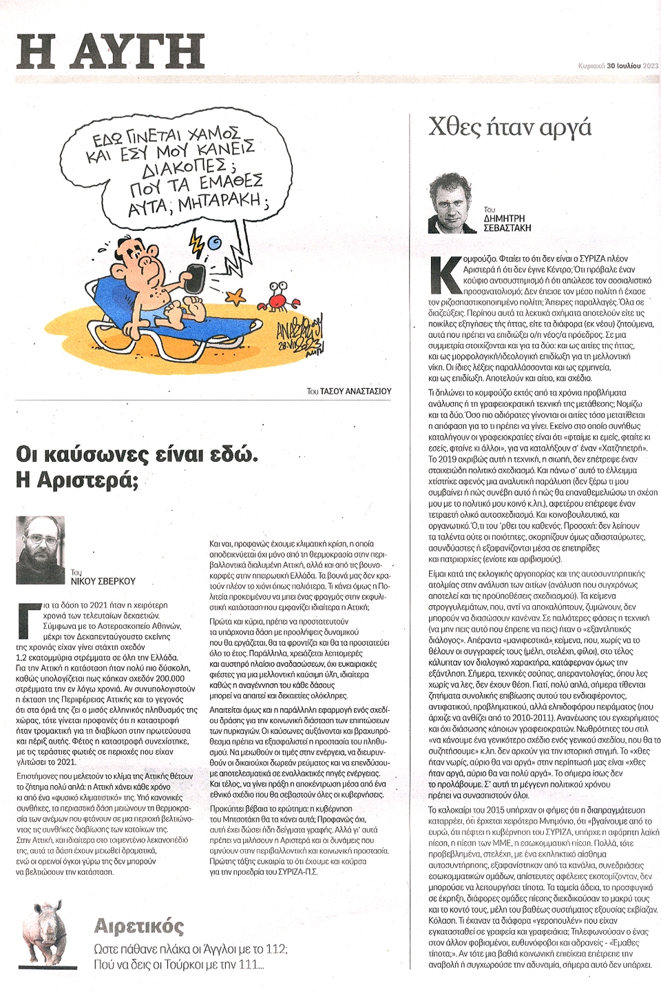 Η ΑΥΓΗ ΤΗΣ ΚΥΡΙΑΚΗΣ - 30 Ιουλίου 2023