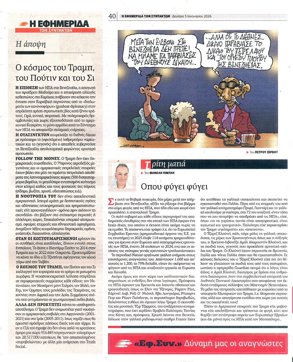 Η ΕΦΗΜΕΡΙΔΑ ΤΩΝ ΣΥΝΤΑΚΤΩΝ - 05 Ιανουαρίου 2026
