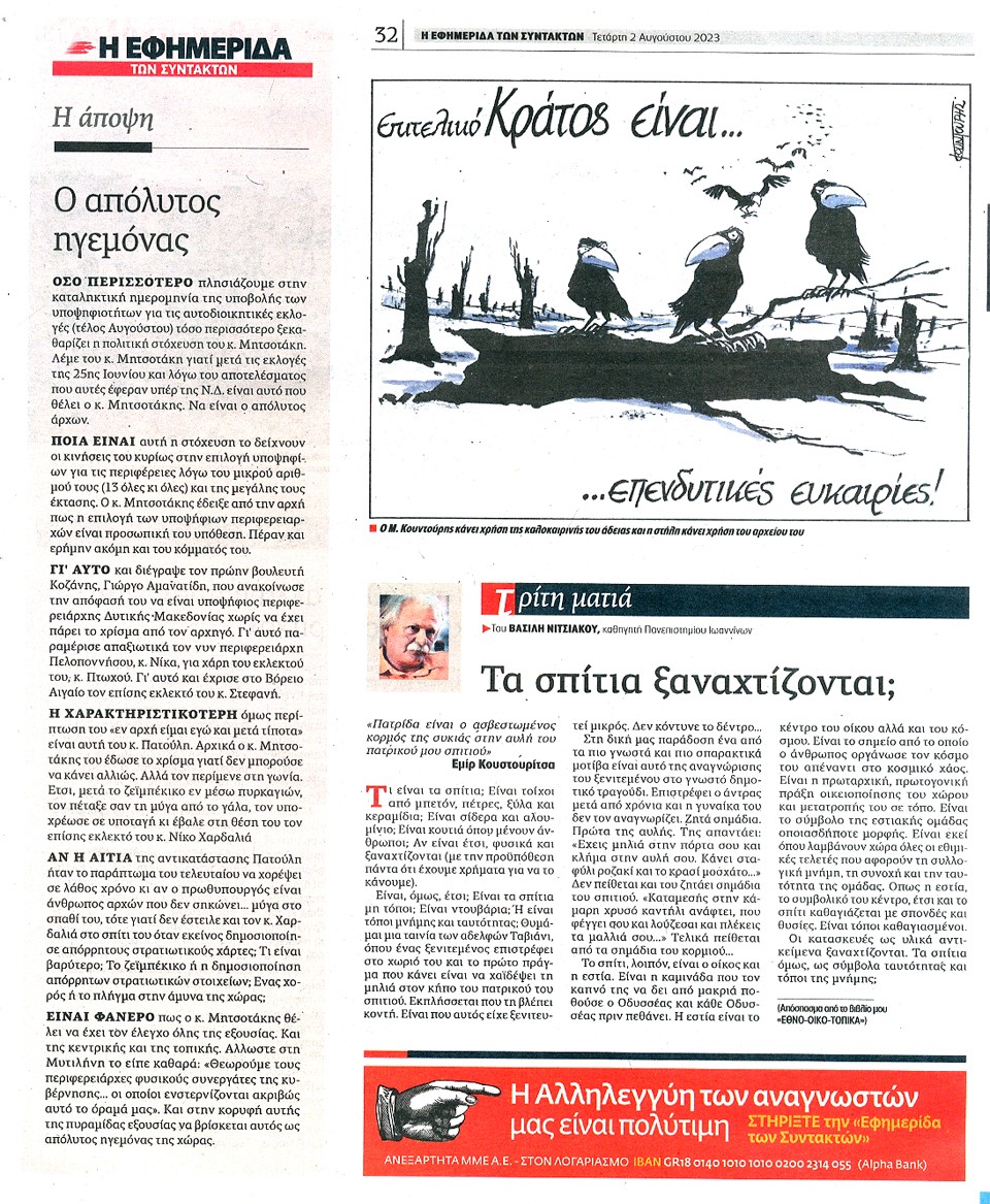 Η ΕΦΗΜΕΡΙΔΑ ΤΩΝ ΣΥΝΤΑΚΤΩΝ - 2 Αυγούστου 2023