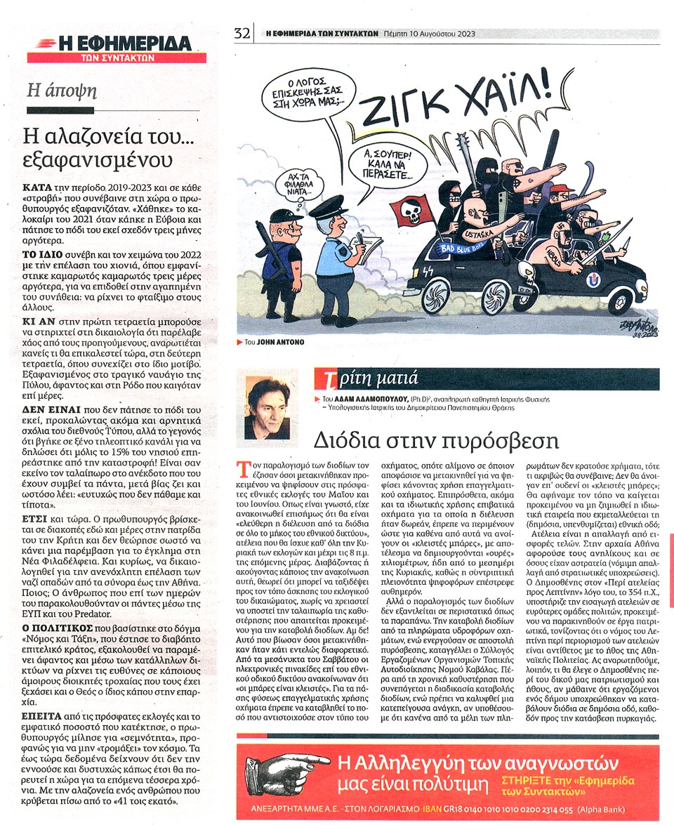 Η ΕΦΗΜΕΡΙΔΑ ΤΩΝ ΣΥΝΤΑΚΤΩΝ - 10 Αυγούστου 2023