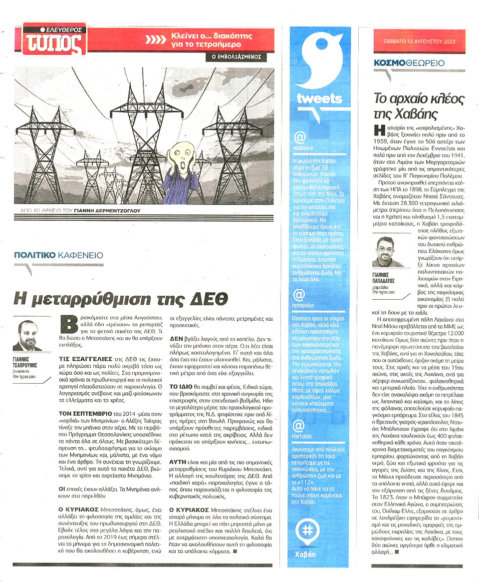 ΕΛΕΥΘΕΡΟΣ ΤΥΠΟΣ - 12 Αυγούστου 2023