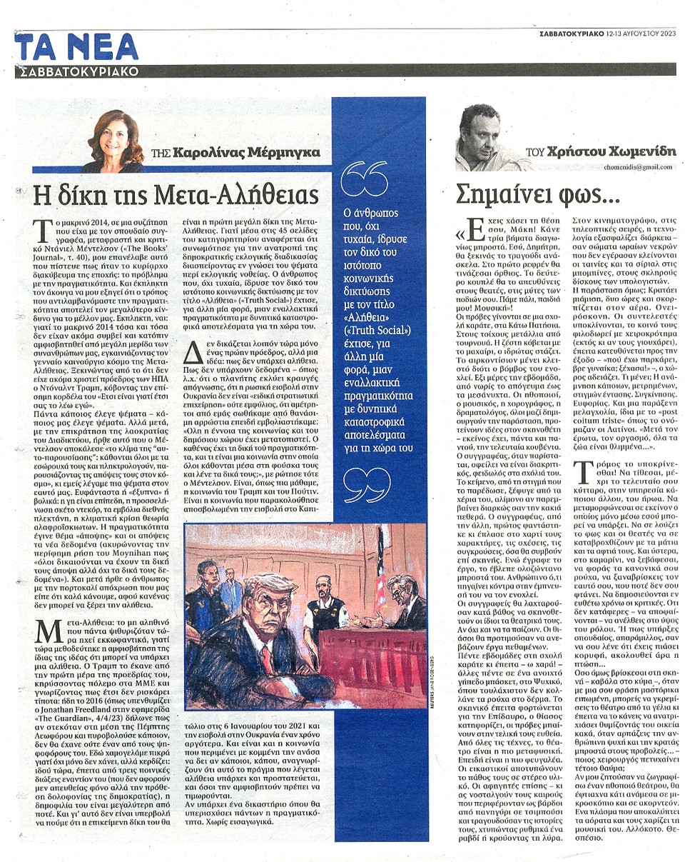 ΤΑ ΝΕΑ - 12 Αυγούστου 2023