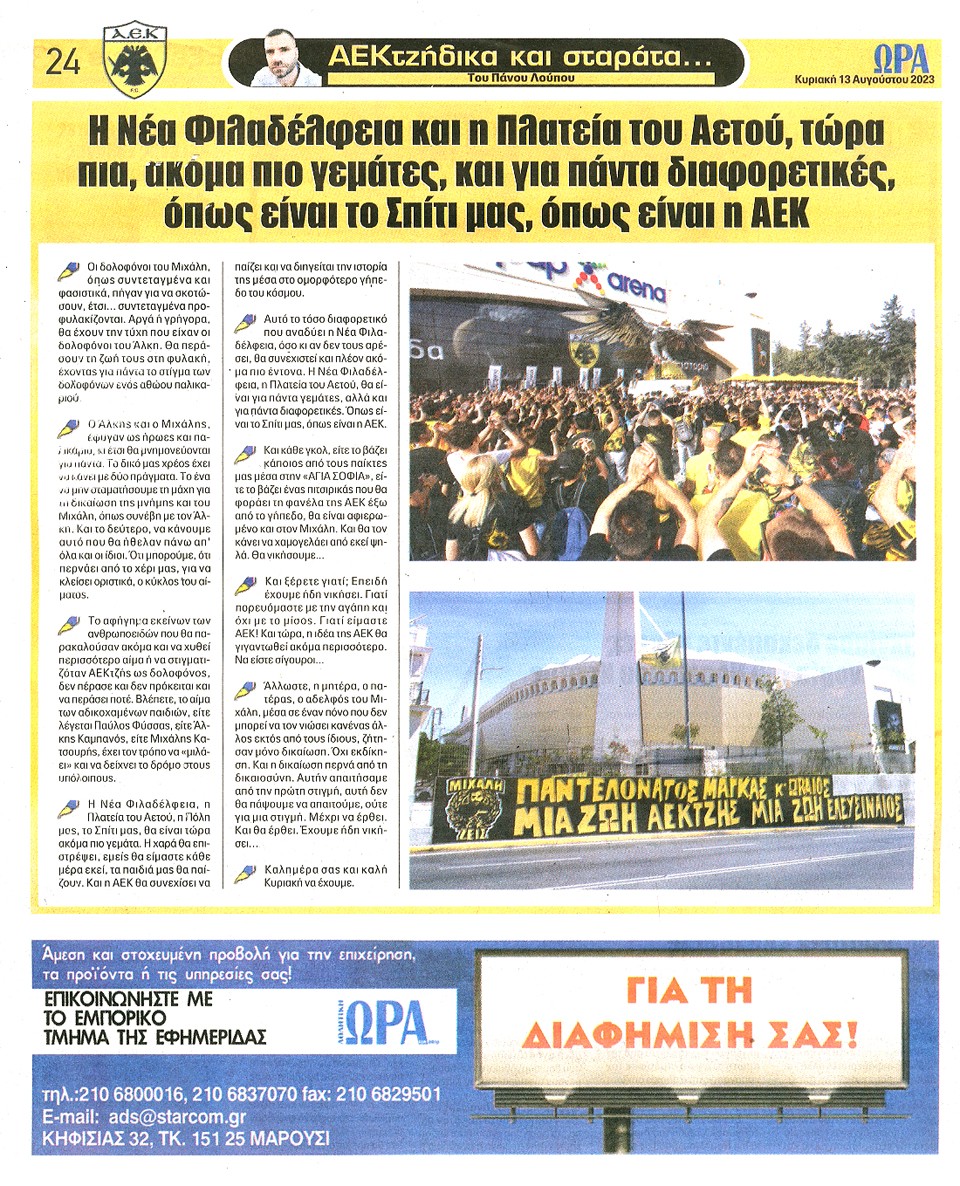 ΑΘΛΗΤΙΚΗ ΩΡΑ ΤΩΝ ΣΠΟΡ - 13 Αυγούστου 2023