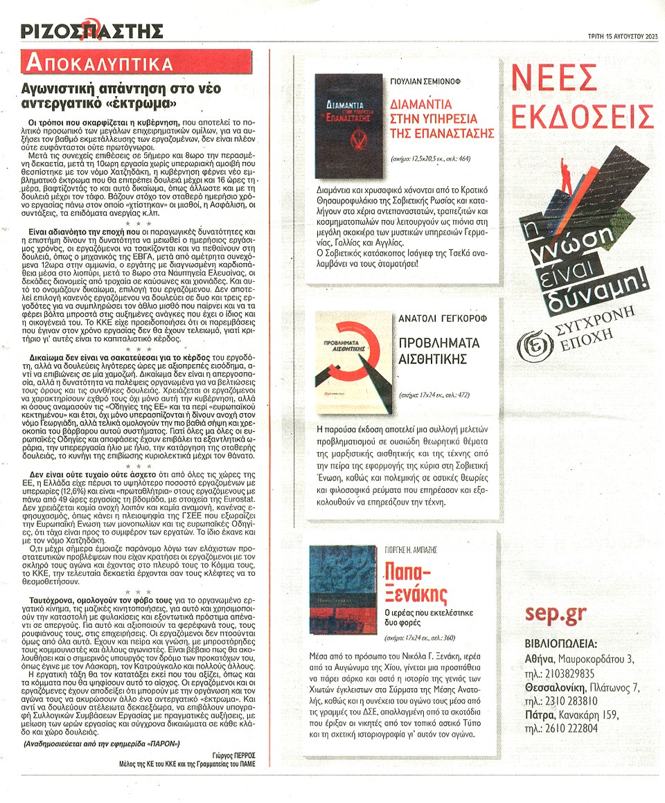 ΡΙΖΟΣΠΑΣΤΗΣ - 15 Αυγούστου 2023