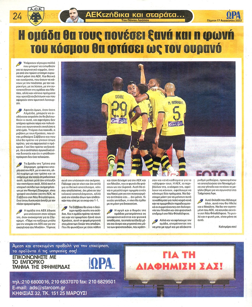 ΑΘΛΗΤΙΚΗ ΩΡΑ ΤΩΝ ΣΠΟΡ - 17 Αυγούστου 2023
