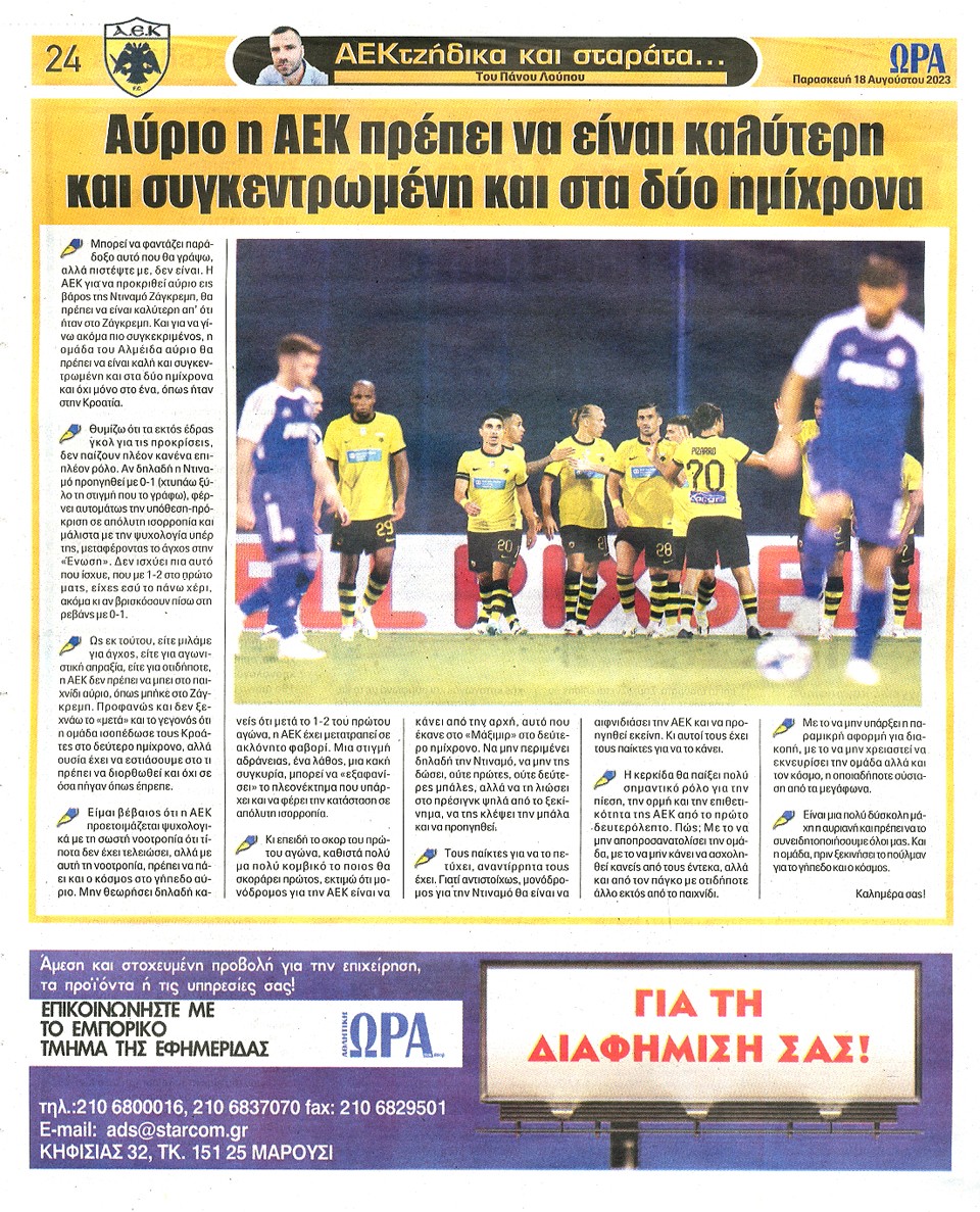 ΑΘΛΗΤΙΚΗ ΩΡΑ ΤΩΝ ΣΠΟΡ - 18 Αυγούστου 2023