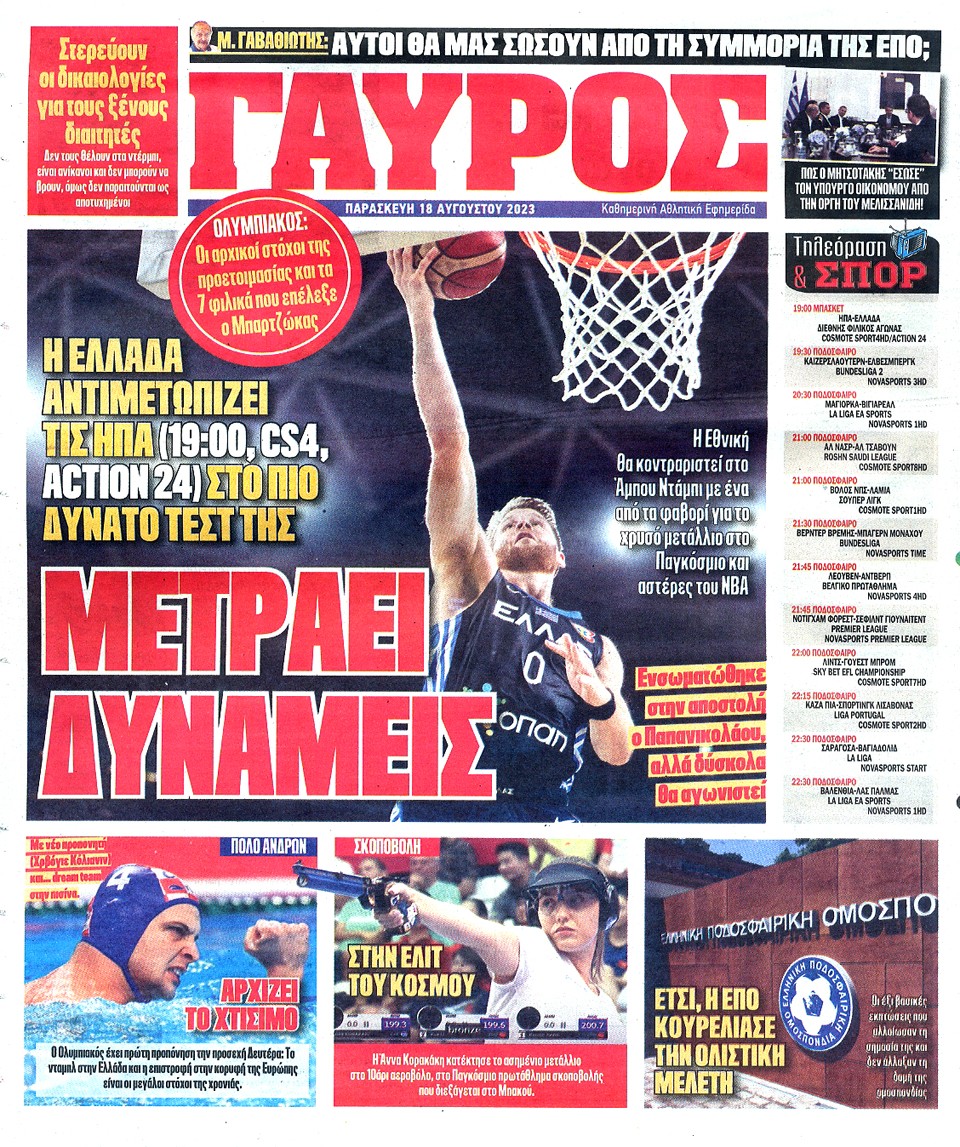 ΠΡΩΤΑΘΛΗΤΗΣ - 18 Αυγούστου 2023