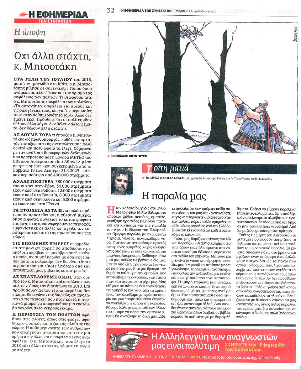 Η ΕΦΗΜΕΡΙΔΑ ΤΩΝ ΣΥΝΤΑΚΤΩΝ - 23 Αυγούστου 2023