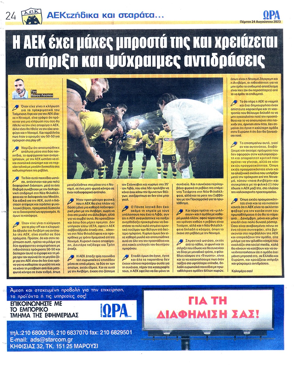 ΑΘΛΗΤΙΚΗ ΩΡΑ ΤΩΝ ΣΠΟΡ - 24 Αυγούστου 2023