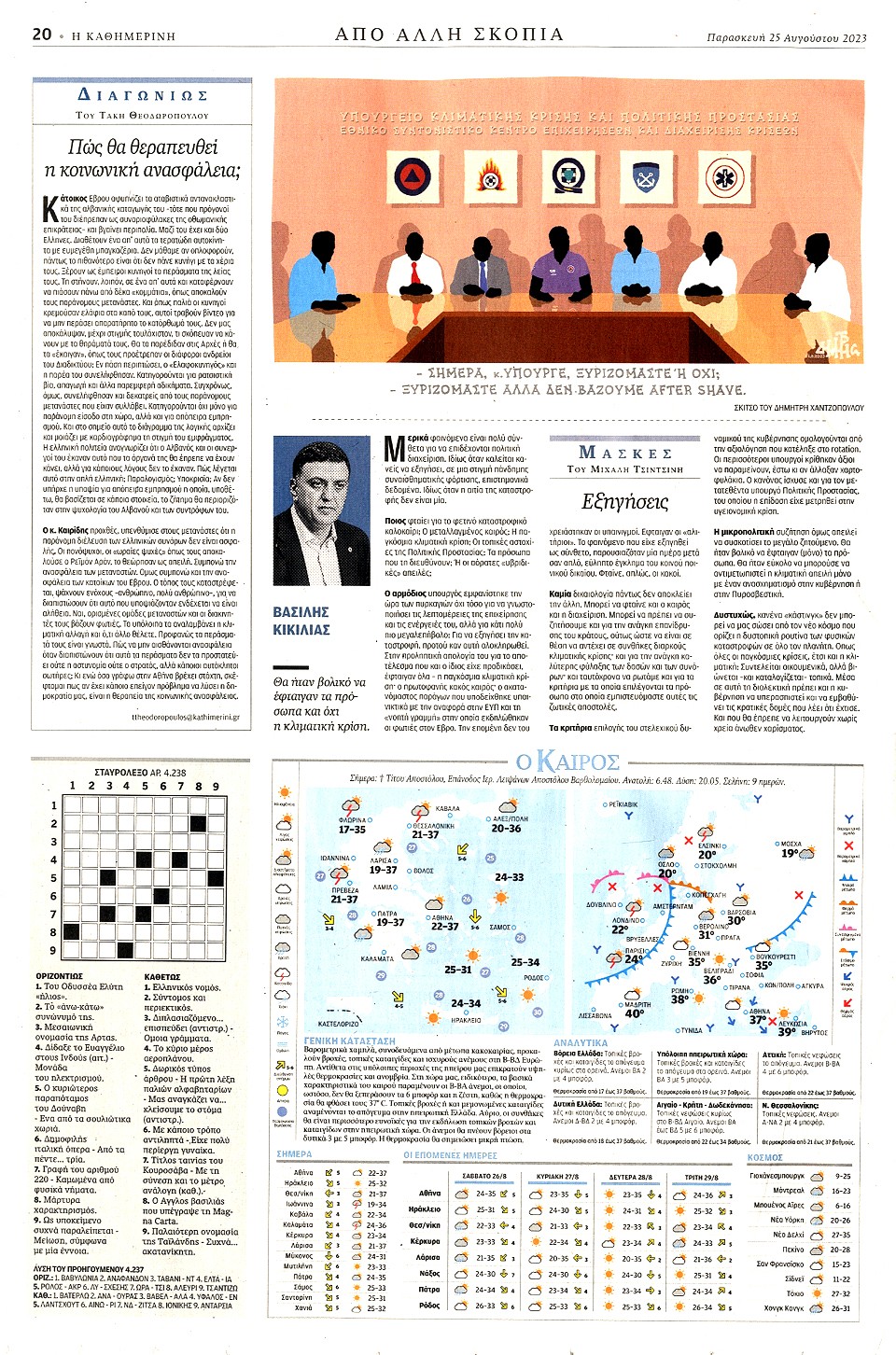 ΚΑΘΗΜΕΡΙΝΗ - 25 Αυγούστου 2023