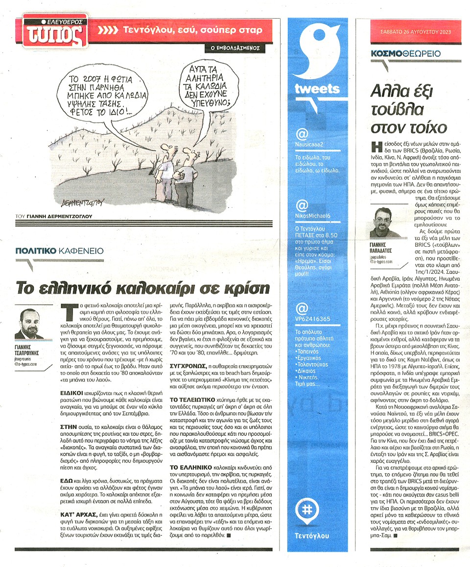 ΕΛΕΥΘΕΡΟΣ ΤΥΠΟΣ - 26 Αυγούστου 2023