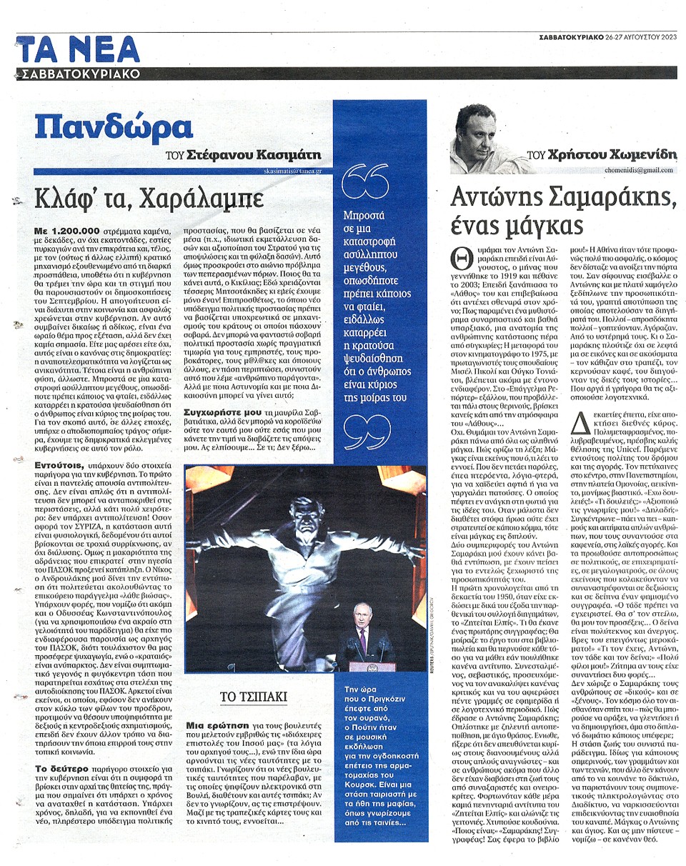ΤΑ ΝΕΑ - 26 Αυγούστου 2023