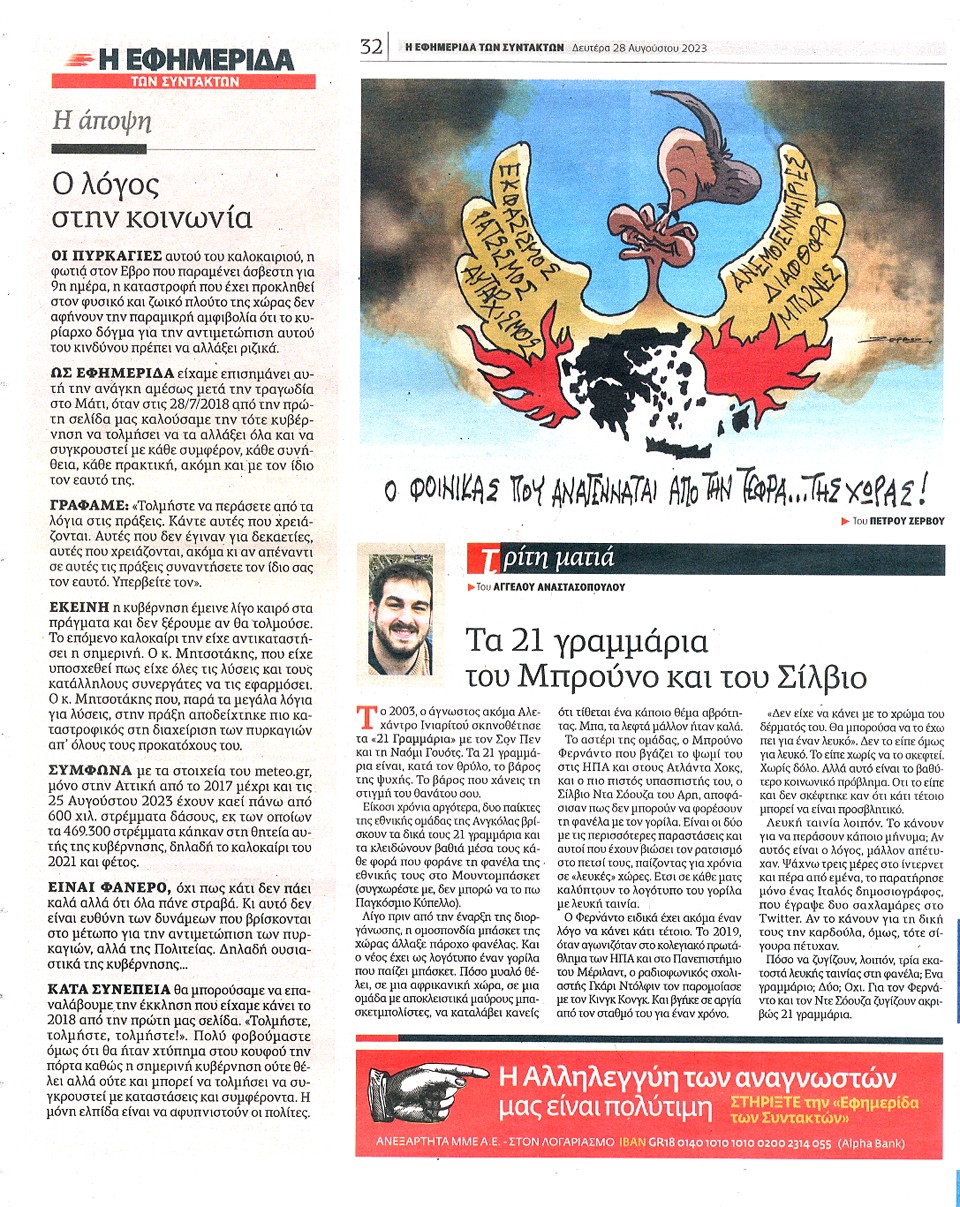 Η ΕΦΗΜΕΡΙΔΑ ΤΩΝ ΣΥΝΤΑΚΤΩΝ - 28 Αυγούστου 2023