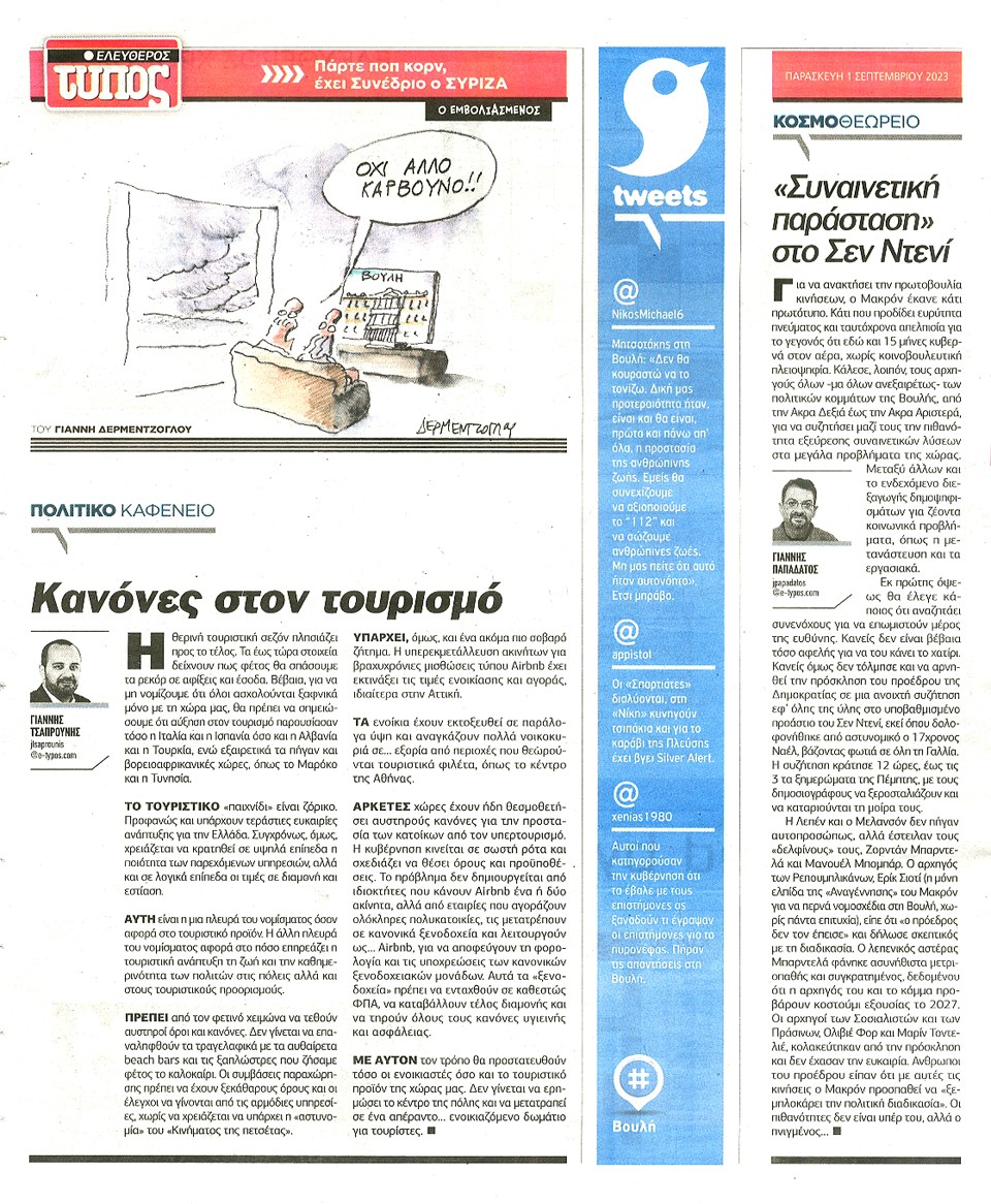 ΕΛΕΥΘΕΡΟΣ ΤΥΠΟΣ - 01 Σεπτεμβρίου 2023