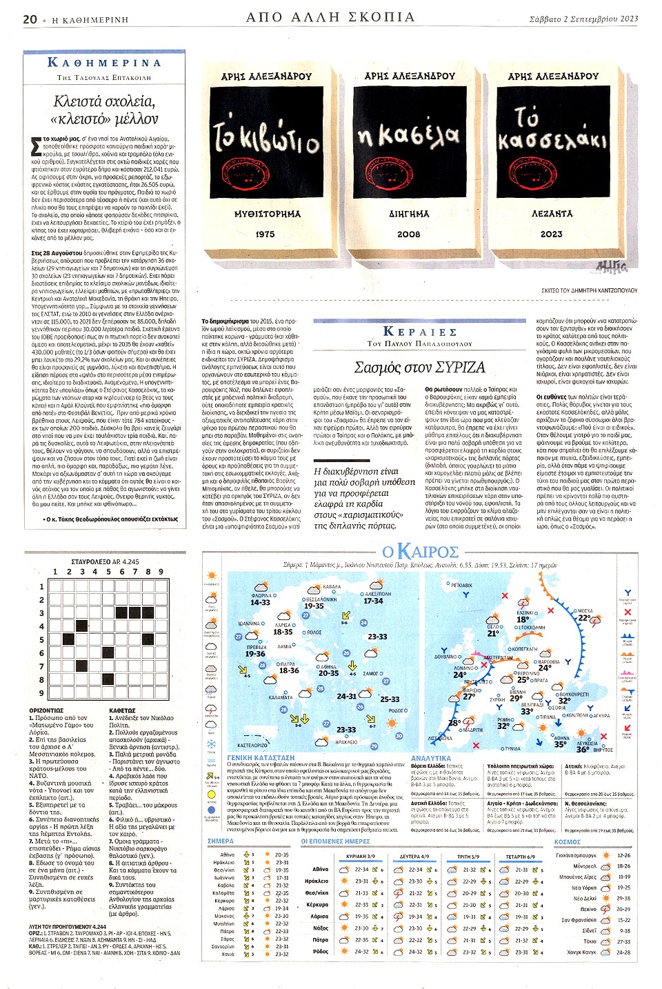 ΚΑΘΗΜΕΡΙΝΗ - 02 Σεπτεμβρίου 2023