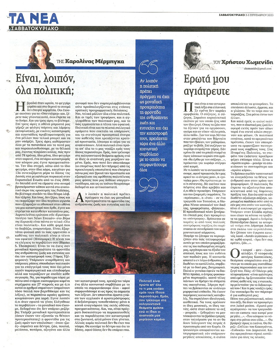 ΤΑ ΝΕΑ - 02 Σεπτεμβρίου 2023