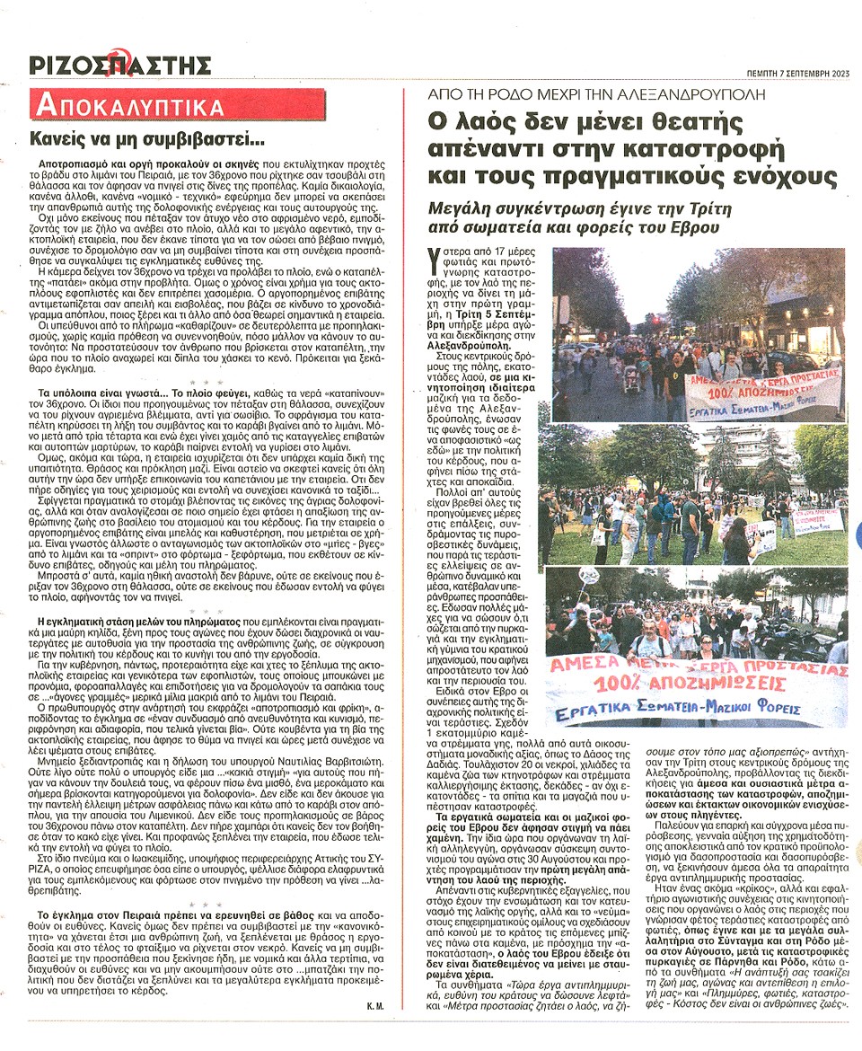 ΡΙΖΟΣΠΑΣΤΗΣ - 07 Σεπτεμβρίου 2023