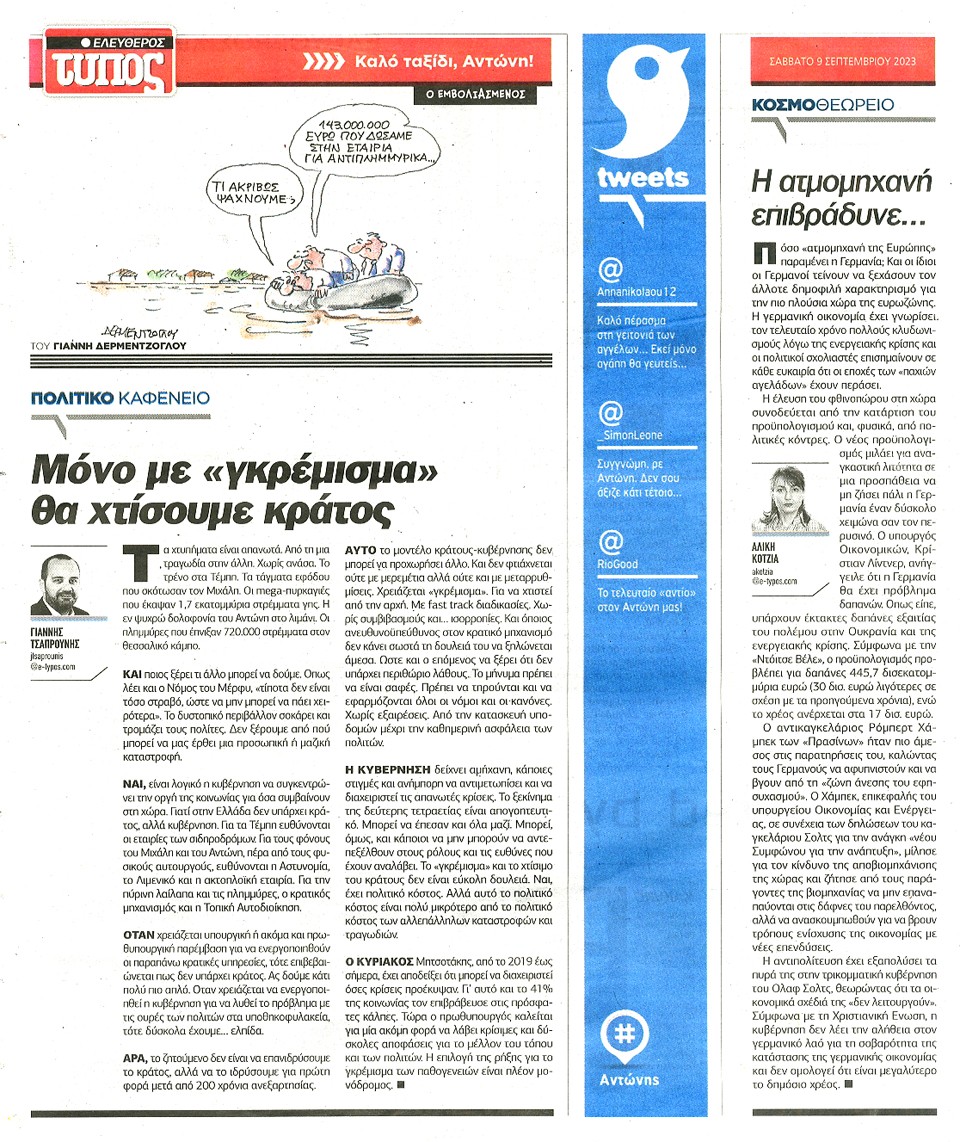ΕΛΕΥΘΕΡΟΣ ΤΥΠΟΣ - 09 Σεπτεμβρίου 2023