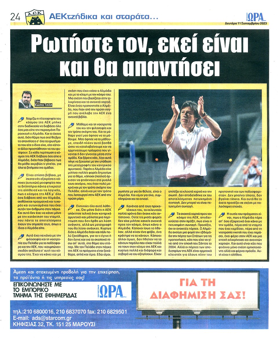 ΑΘΛΗΤΙΚΗ ΩΡΑ ΤΩΝ ΣΠΟΡ - 11 Σεπτεμβρίου 2023