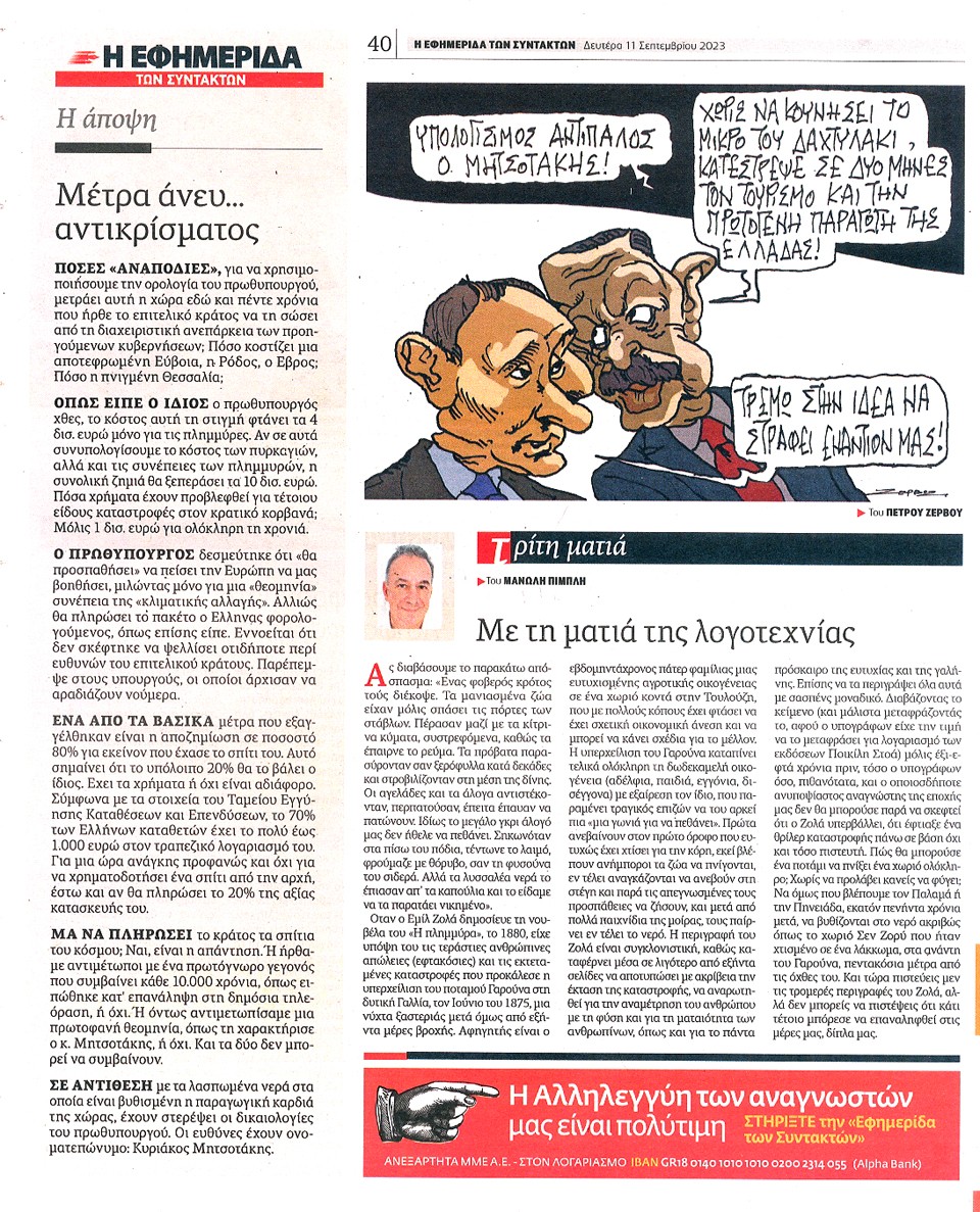 Η ΕΦΗΜΕΡΙΔΑ ΤΩΝ ΣΥΝΤΑΚΤΩΝ - 11 Σεπτεμβρίου 2023