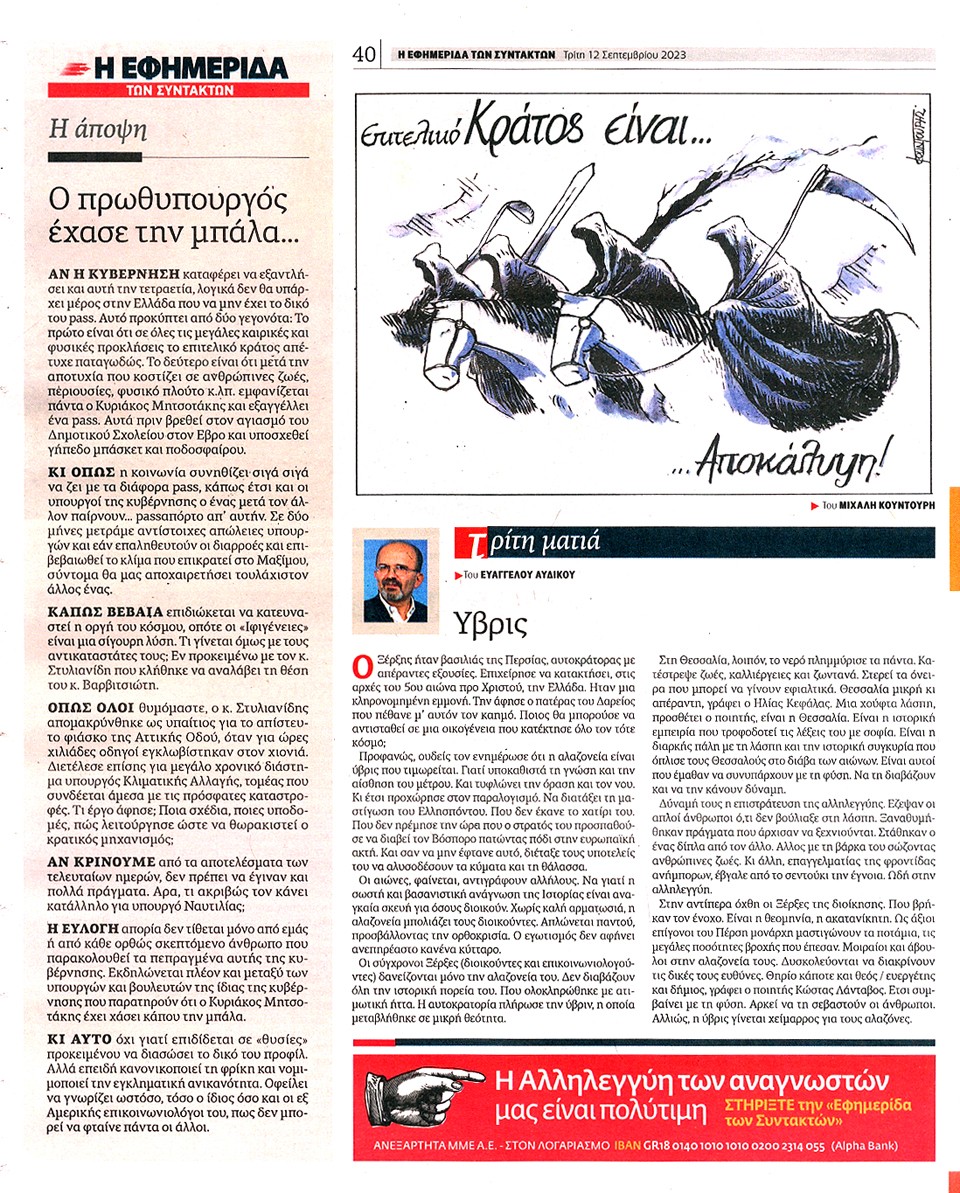 Η ΕΦΗΜΕΡΙΔΑ ΤΩΝ ΣΥΝΤΑΚΤΩΝ - 12 Σεπτεμβρίου 2023