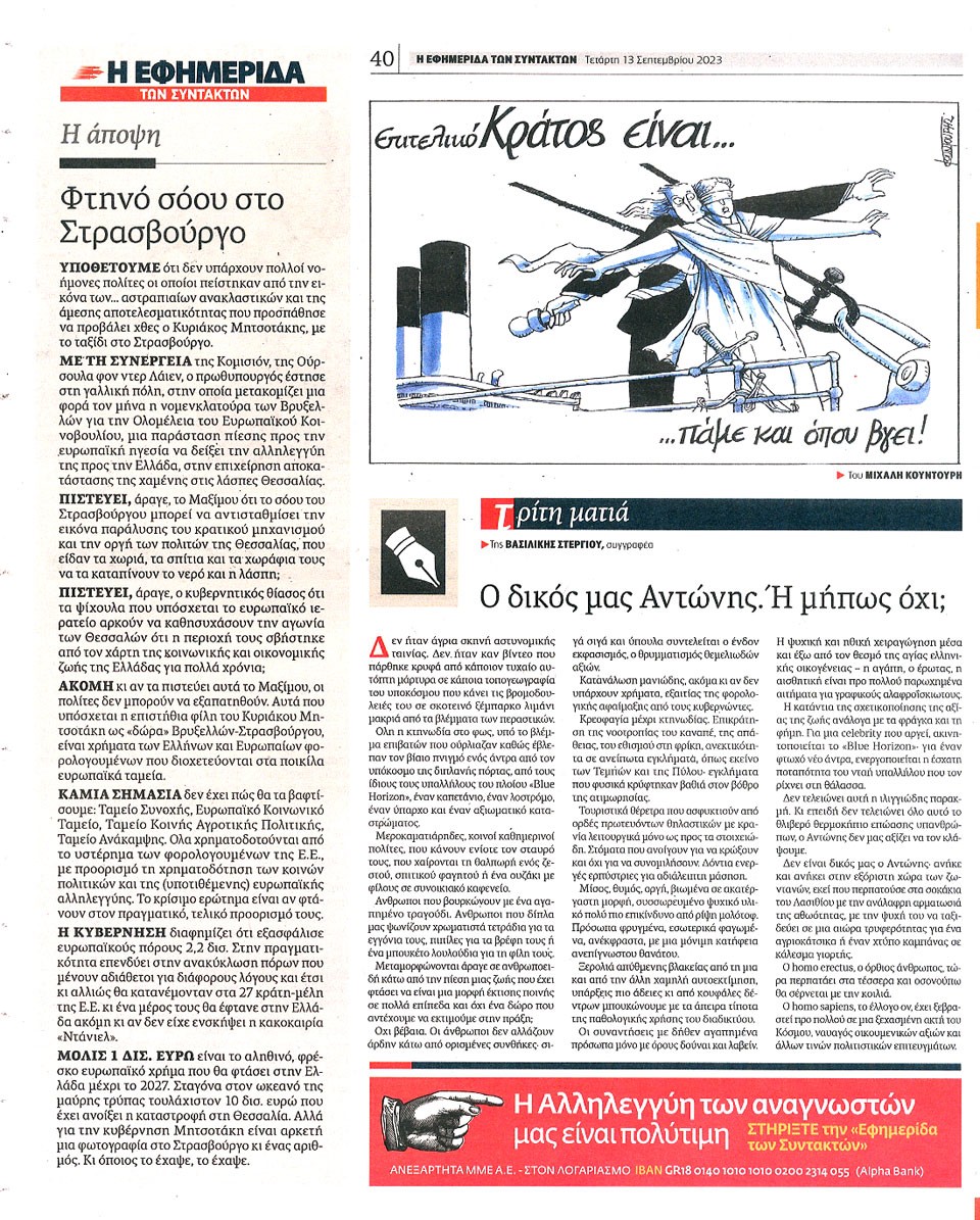 Η ΕΦΗΜΕΡΙΔΑ ΤΩΝ ΣΥΝΤΑΚΤΩΝ - 13 Σεπτεμβρίου 2023