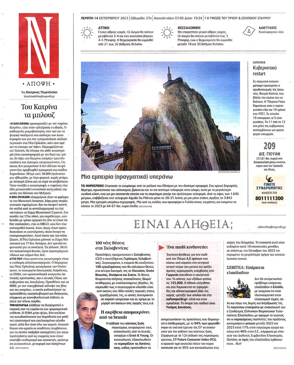 ΝΑΥΤΕΜΠΟΡΙΚΗ - 14 Σεπτεμβρίου 2023