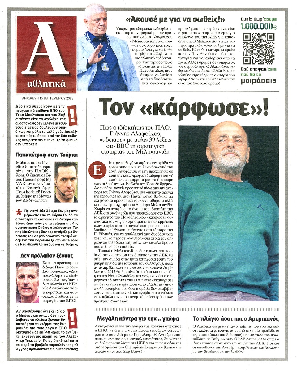 ΑΠΟΓΕΥΜΑΤΙΝΗ - 15 Σεπτεμβρίου 2023