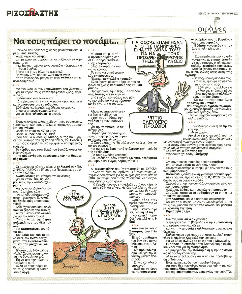 ΡΙΖΟΣΠΑΣΤΗΣ ΤΗΣ ΚΥΡΙΑΚΗΣ - 16 Σεπτεμβρίου 2023