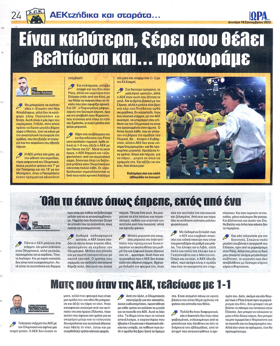 ΑΘΛΗΤΙΚΗ ΩΡΑ ΤΩΝ ΣΠΟΡ - 18 Σεπτεμβρίου 2023